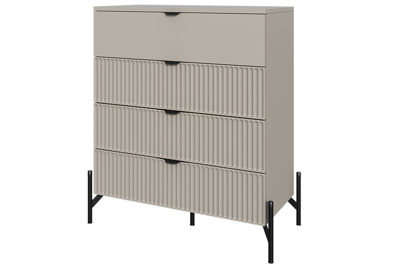 Комод «Нео» — это выразительное сочетание минимализма и архитектурной пластики. Его строгая геометрия смягчается ритмичной текстурой фасада, создавая эффект глубины и динамики.